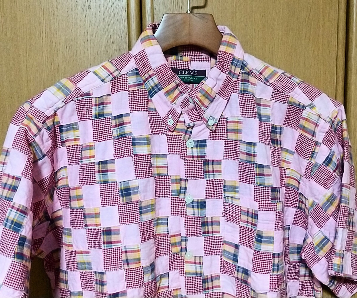 > CLEVE クリーブ 半袖シャツ アメリカ シャツメーカー M パッチワーク ピンク メンズ Ralph Lauren Brooks Brothers ボタンダウンシャツ