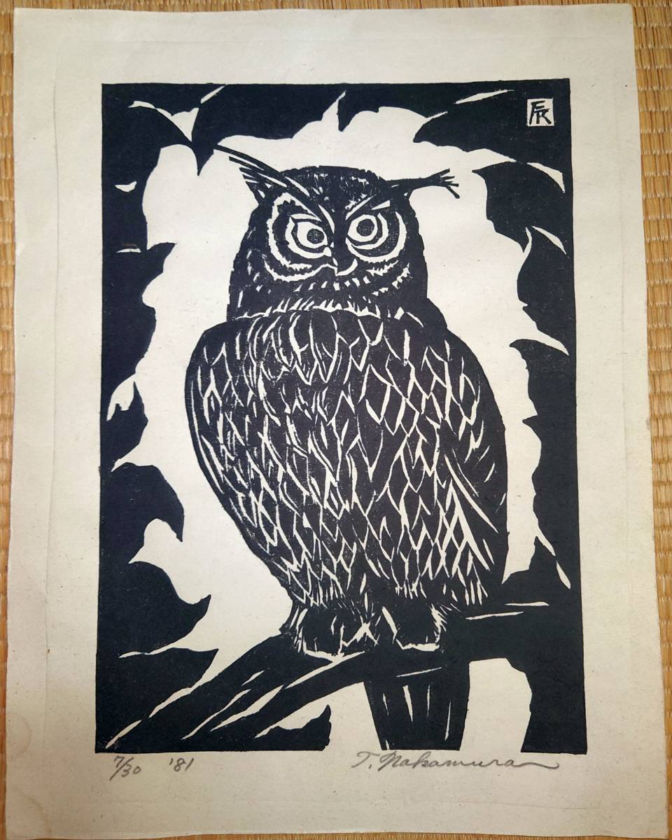 - f23080416〇版画 中村辰 ふくろう 7/30 1981年〇和本古書古文書