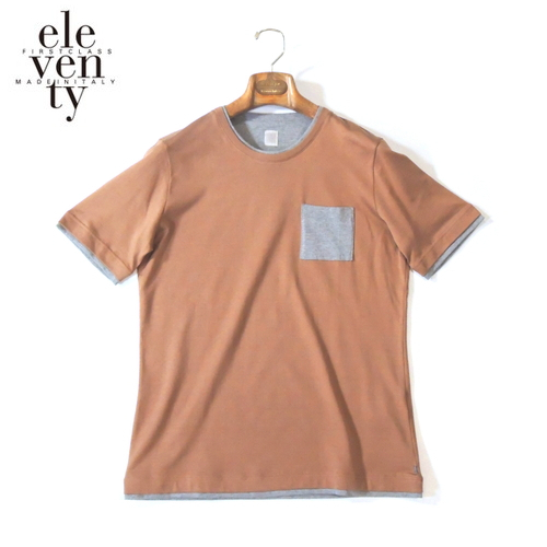 > 【定価2.6万・新品・S】 eleventy PLATINUM(イレブンティ)コットンメリヤス フェイクレイヤードクルーネックTシャツ ブラウン A75TSHA03