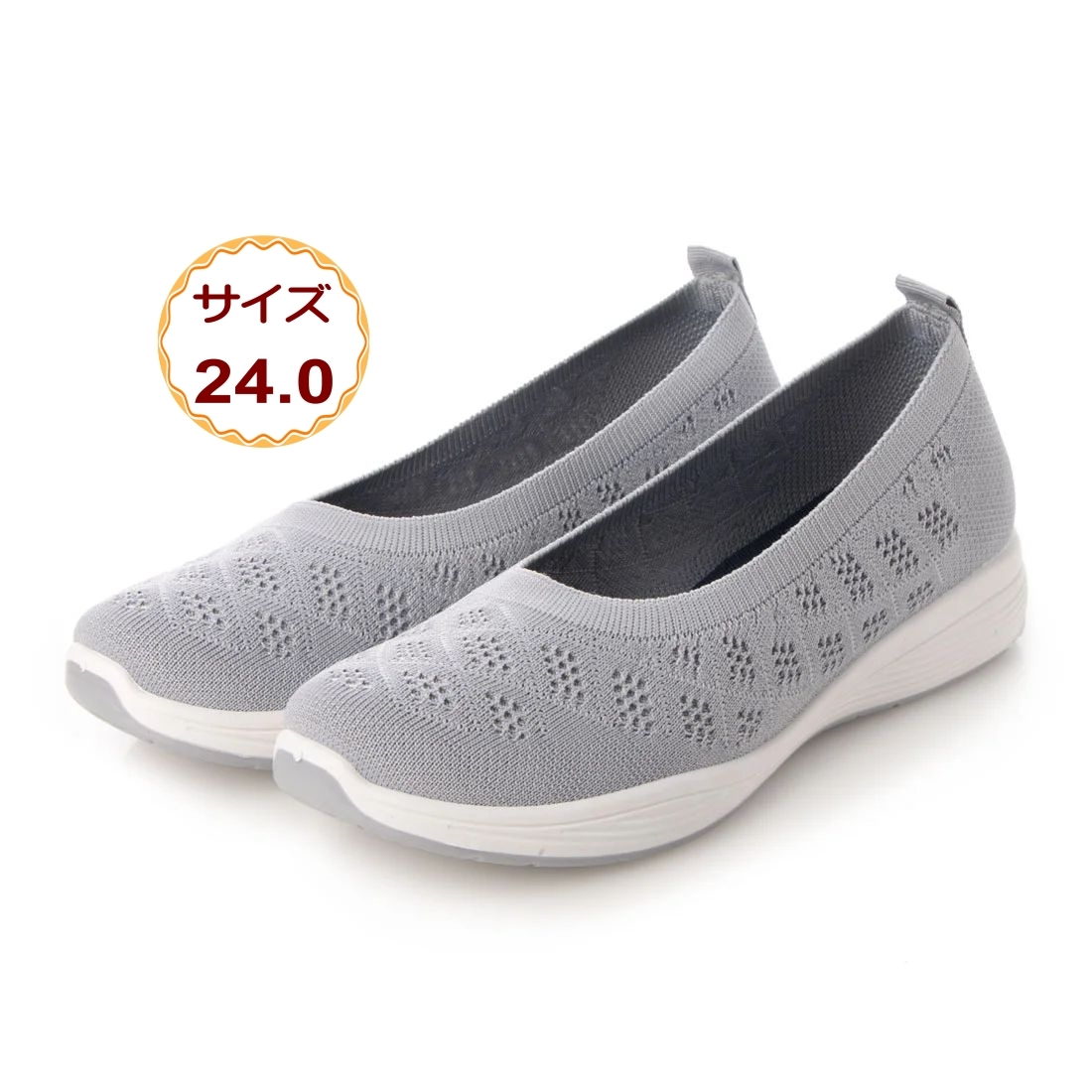 - レディース フライニット パンプス フラットシューズ 軽量 通気性 オフィス カジュアル フォーマル 上履き 医療 グレー 22538-gry-240