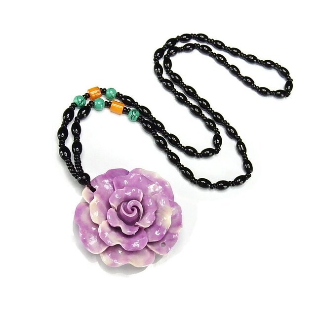 - 綺麗紫デカバラ合成マザーオブパール黒ビーズ夏ネックレス セーターチェーンプライム