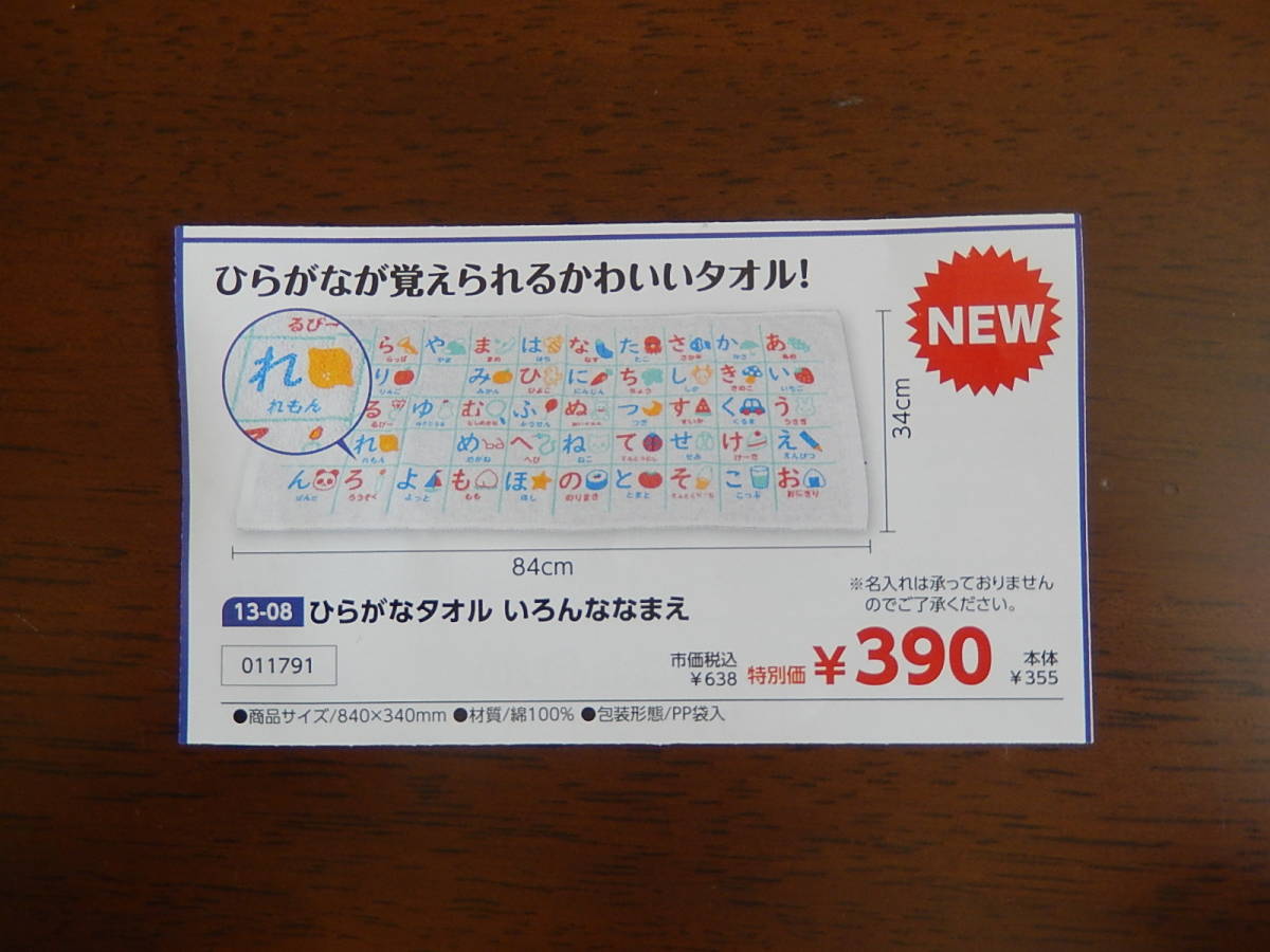 - ★11791★ひらがなタオルいろんななまえ★ひらがながおぼえられるかわいいタオル!★自由工作&自由研究★
