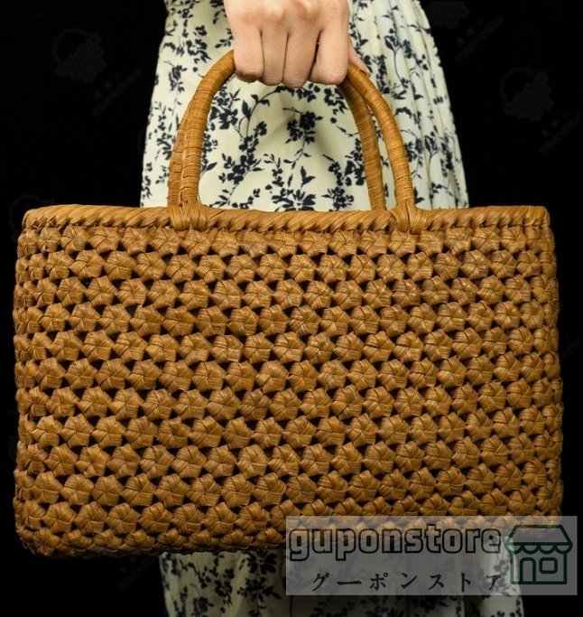 - 高品質 山葡萄 かごバッグ 中 横長 六角花編み 浴衣 かごバッグ 山葡萄 かご バッグ やまぶどう カゴ バッグ 籠