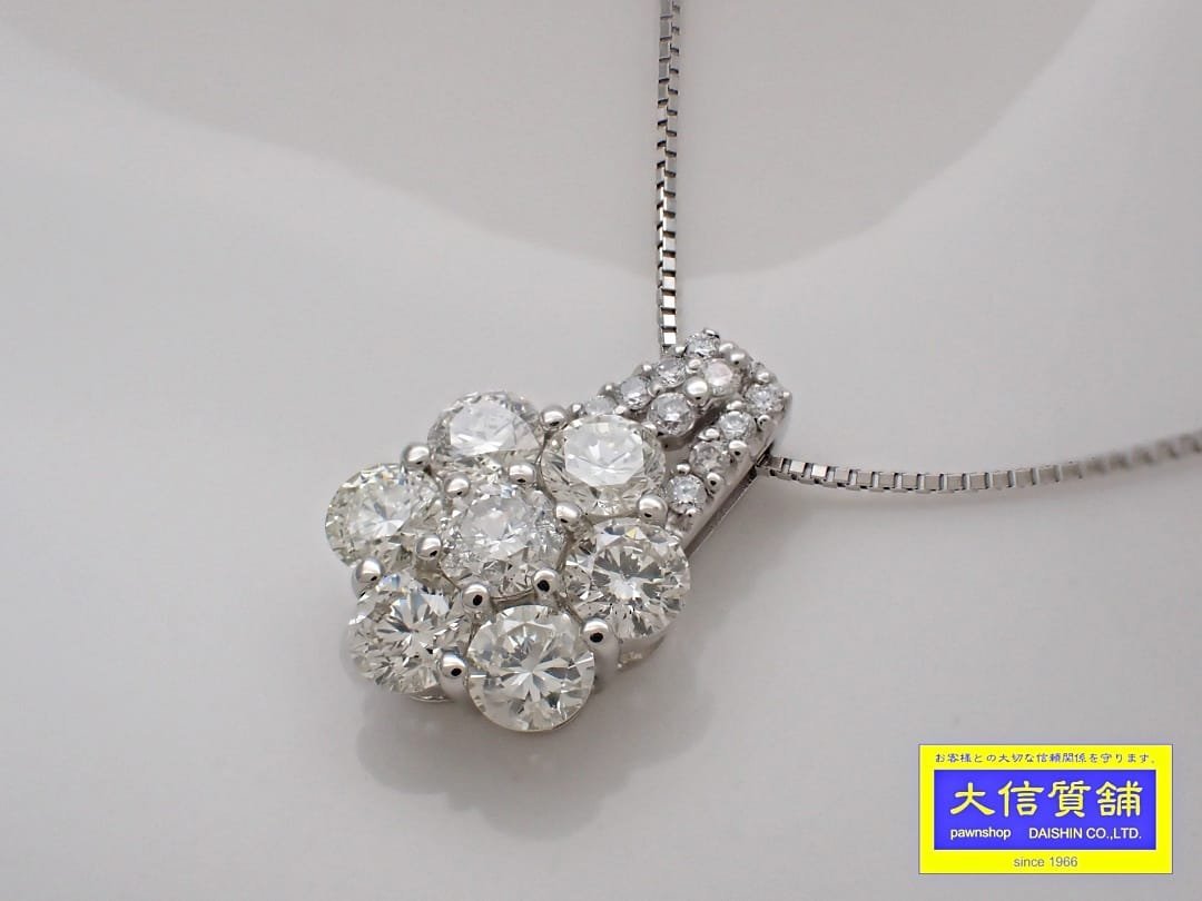 > Pt850 プラチナ ベネチアチェーン ダイヤ ペンダント ネックレス 2.00ct 45cm 5.5g 中古A- 【送料無料】 C-8937