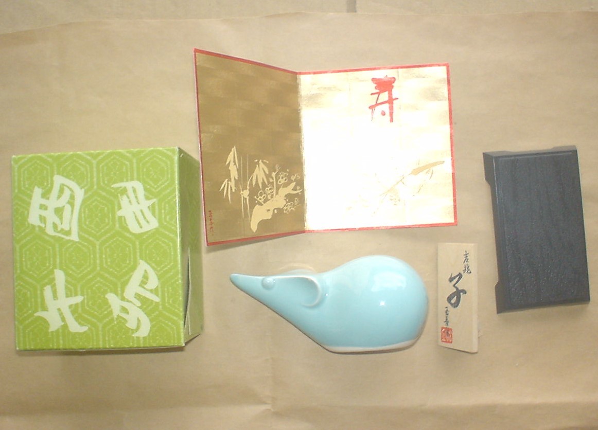 - 干支 置物 子 置台付き 屏風付き 子年用置物