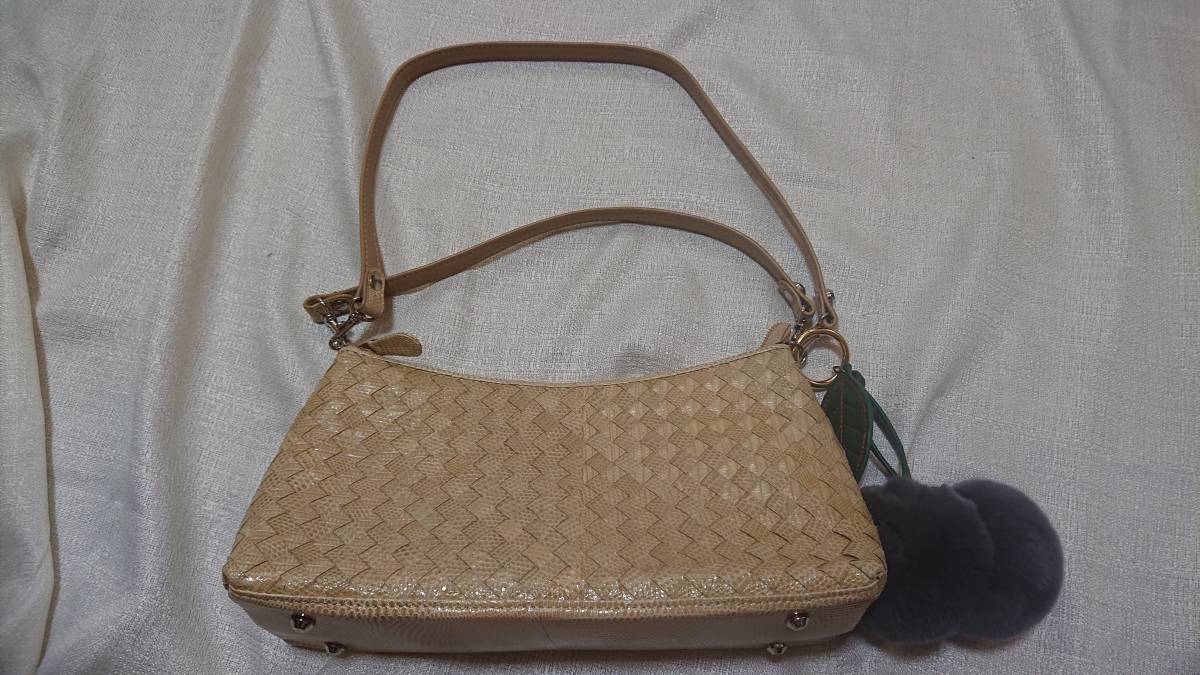 - BAGFAN produce by seki バッグファン 編み込み リザード 高級本革 内側スウェード ショルダーバッグ トカゲ 未使用 美品