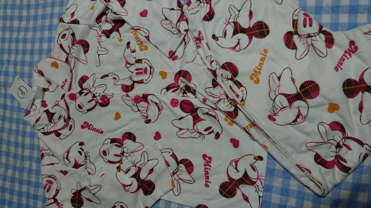 - 〇0930☆未使用・保管品☆DISNEY☆ミニー総柄前開きパジャマ 白130