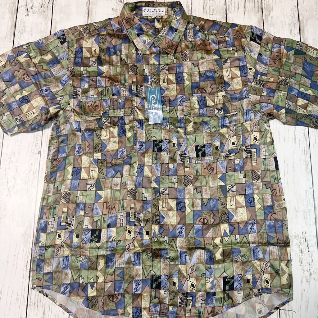 - 未使用 タグ付き Qiaonuo シルクシャツ 総柄 柄シャツ レトロ アート ビンテージ 半袖シャツ PURE SILK100%