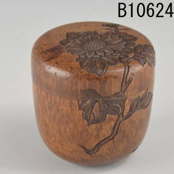 - B10624 四国彫師 雪堂 竹製菊彫棗 昭和初年:本物保証 送料無料