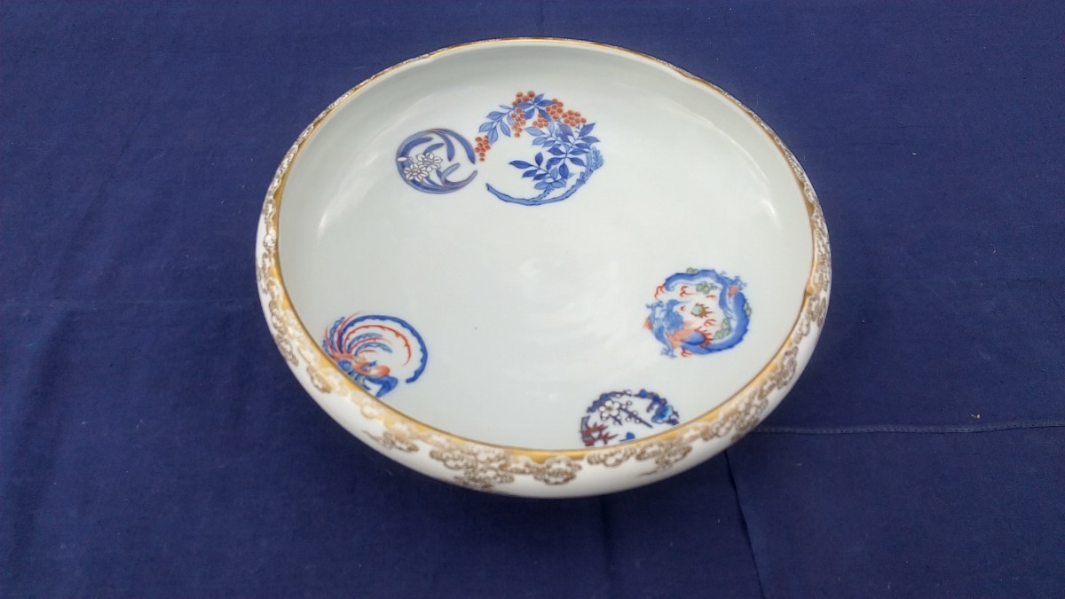 - 大正~昭和初期 オールド深川 染錦龍.鳳凰丸紋 菓子器 深川製磁
