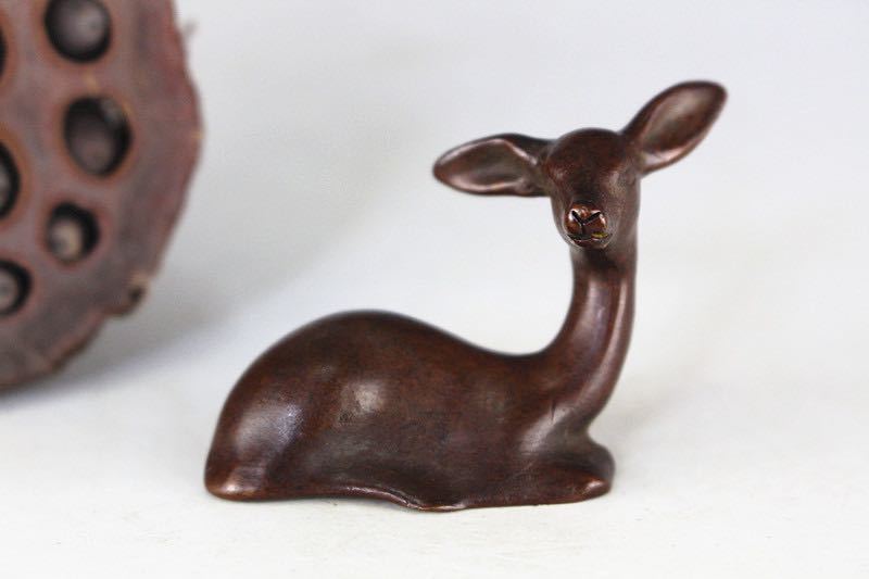 - 極美古銅煎茶道具 質感 細工実心銅鹿 可愛い 日本小鹿 置物