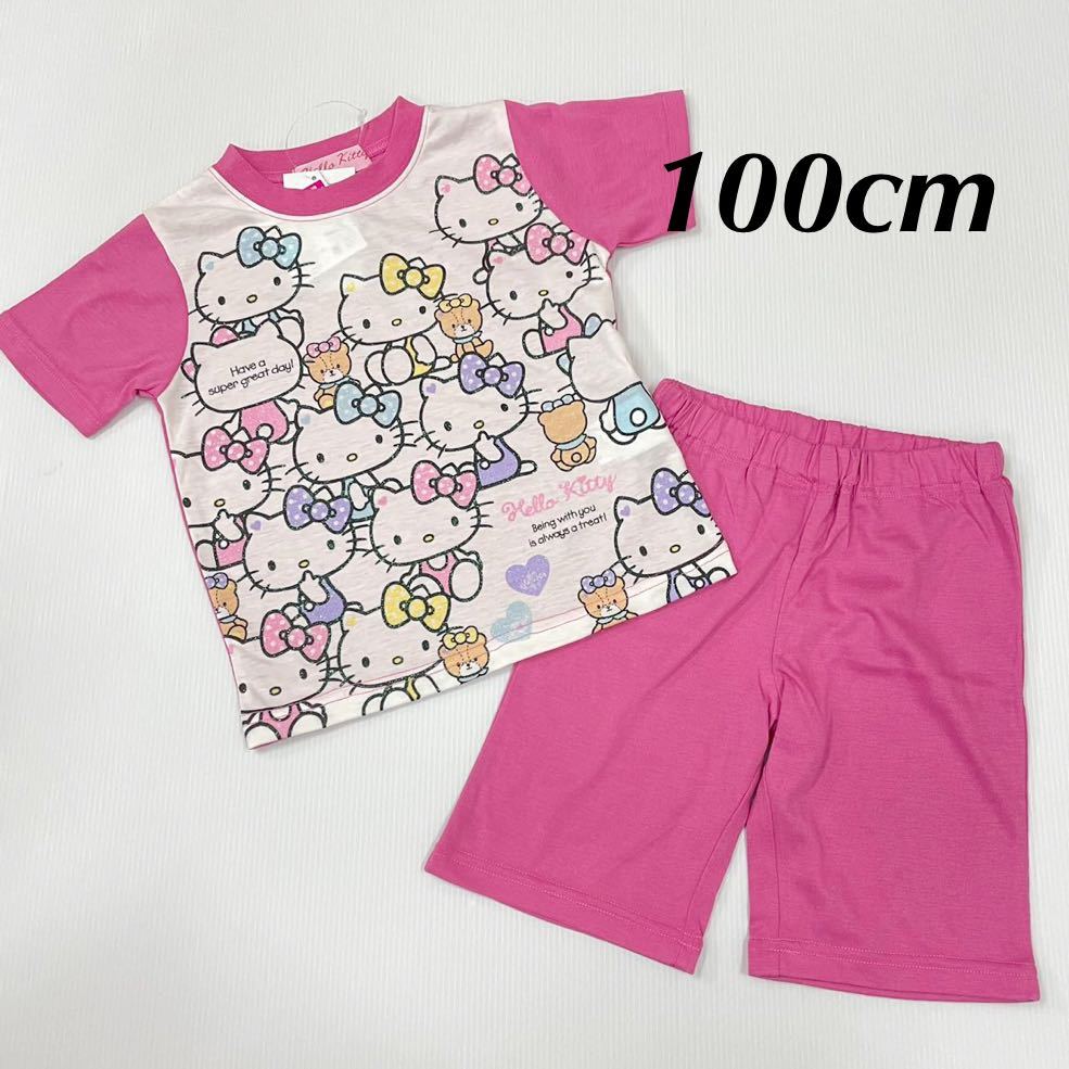 - 新品17759 ハローキティ キティいっぱい 100cm ピンク 半袖パジャマ 上下セット 女の子 キッズ サンリオ 夏パジャマ