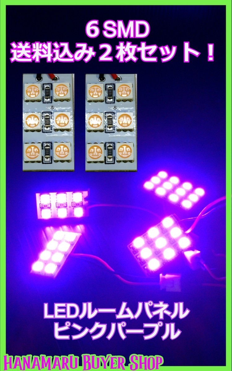 > LEDルーム灯パネル ピンクパープル 2枚セット 5050 6SMD S10 T10 31mm~44mmヒューズ型コネクター付き