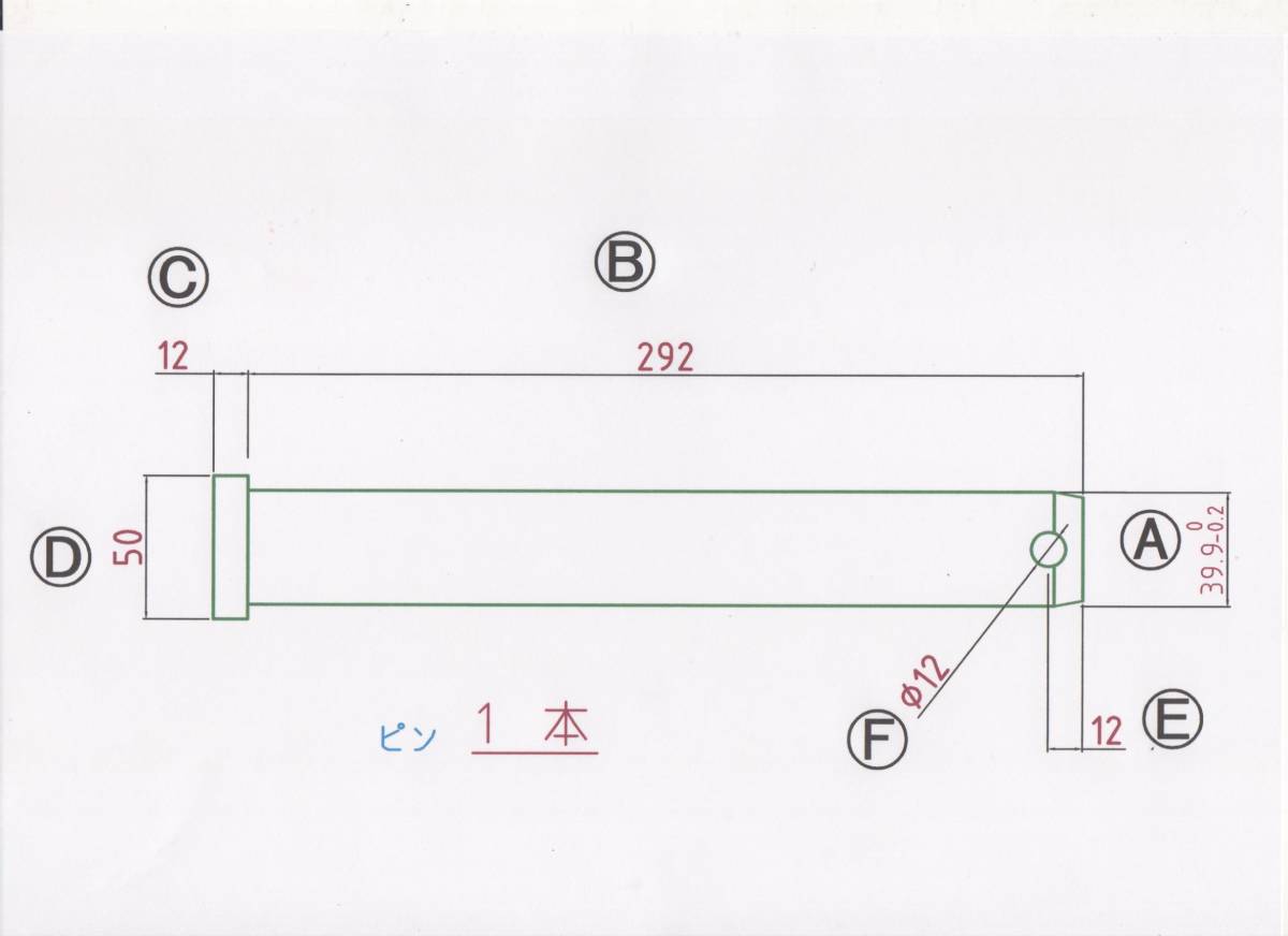 - NO 228 Φ40用 ツバ下292mm バケット ピン 重機用
