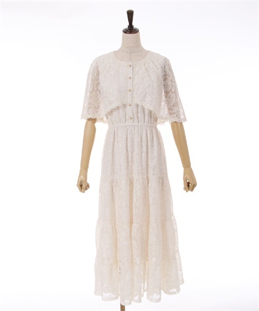 - 495◇ケープ風レースティアードワンピース 生成り キナリ axes femme アクシーズ ファム CI351X35 ロングワンピース ロング