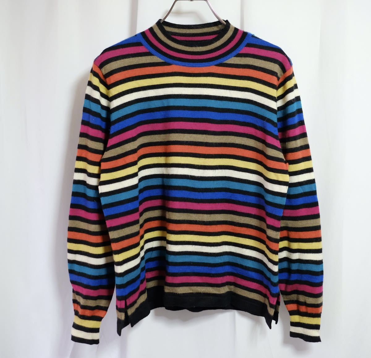 - 【1980s】ビンテージ サイケデリックカラーリング マルチボーダーニット カラフル セーター カットソー 古着屋 ヒッピー