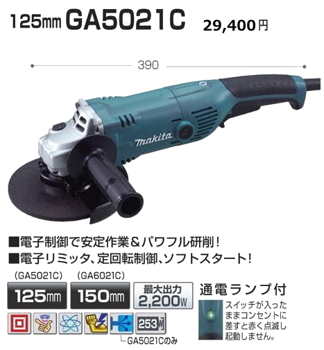 - マキタ 125mm ディスクグラインダ GA5021C 新品