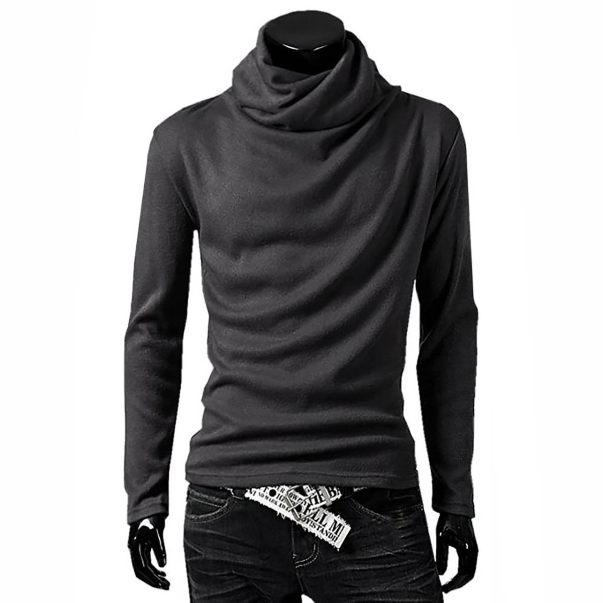 - メ9-5.タートルネック Tシャツ 無地 長袖 スタイリッシュ グレー XL