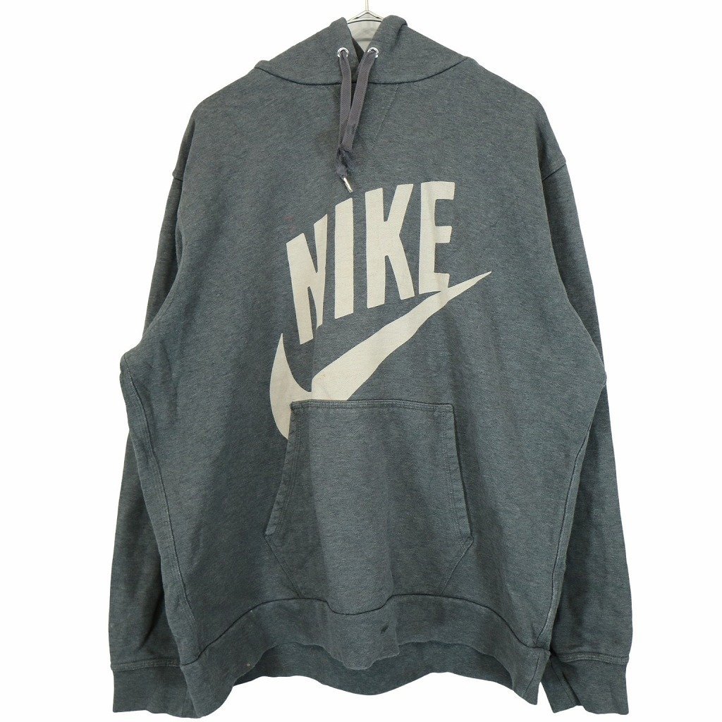 > NIKE ナイキ ロゴプリントパーカー フーディー スポーツ Vガゼット グレー (メンズ XL) 中古 古着 O3459