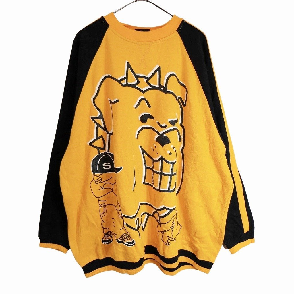 > ASG イラスト スウェット 大きいサイズ 犬 ラグランスリーブ ビッグシルエット イエロー (メンズ 3XL) 中古 古着 O3618