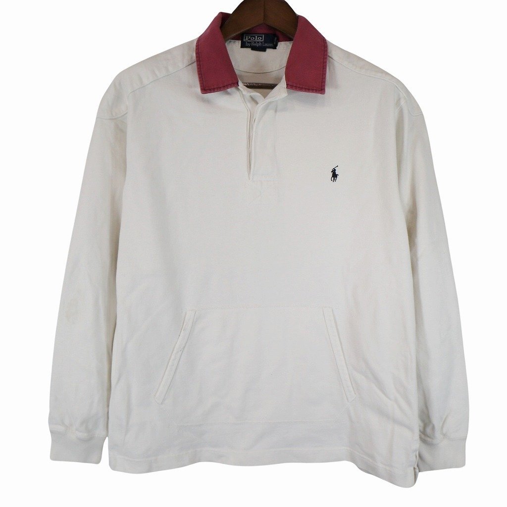 > 90年代 Polo by Ralph Lauren ポロバイラルフローレン 長袖ポロシャツ ホワイト (メンズ L) 中古 古着 O4049
