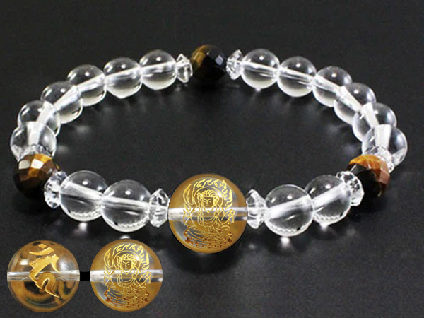 - 水晶「不動明王様と梵字」のブレスレット18cm