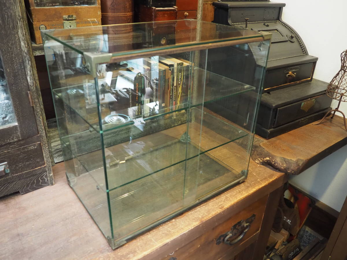 - 【3段ガラスケース】駄菓子屋コレクション棚インテリア薬局本棚キャビネット古道具インダストリアル収納ショーケース化粧品台アンティーク