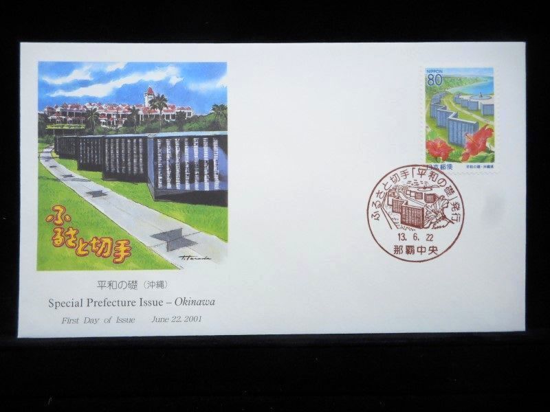 - ふるさと切手 平和の礎 2001年6月22日 那覇中央 初日カバー FDC 日本切手 L-124