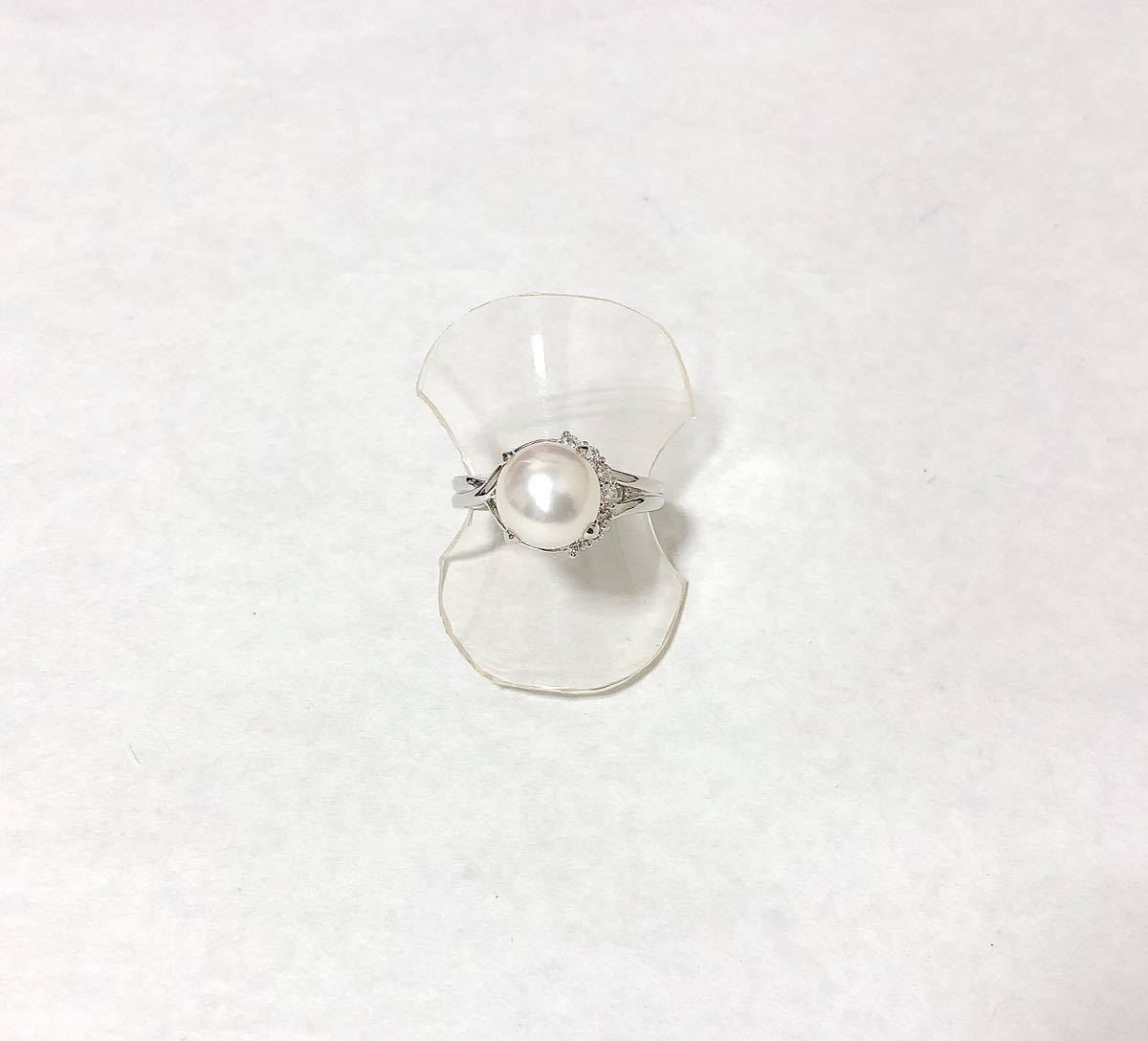 - 【質屋 尾張屋商店 東京】 ☆鑑別結果付☆ Pt900 アコヤパール ダイヤモンドリング レディース #9 8.8mm