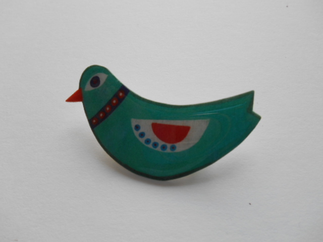 女性作家Milena Mishevaさんが作った木製のブローチです。薄くて軽くて使いやすいブローチです。表面は光沢があってツルツルとした肌触りです。胸元だけでなく帽子やバッグなどにも飾れます。どこにでも使えるかわいいブローチです。