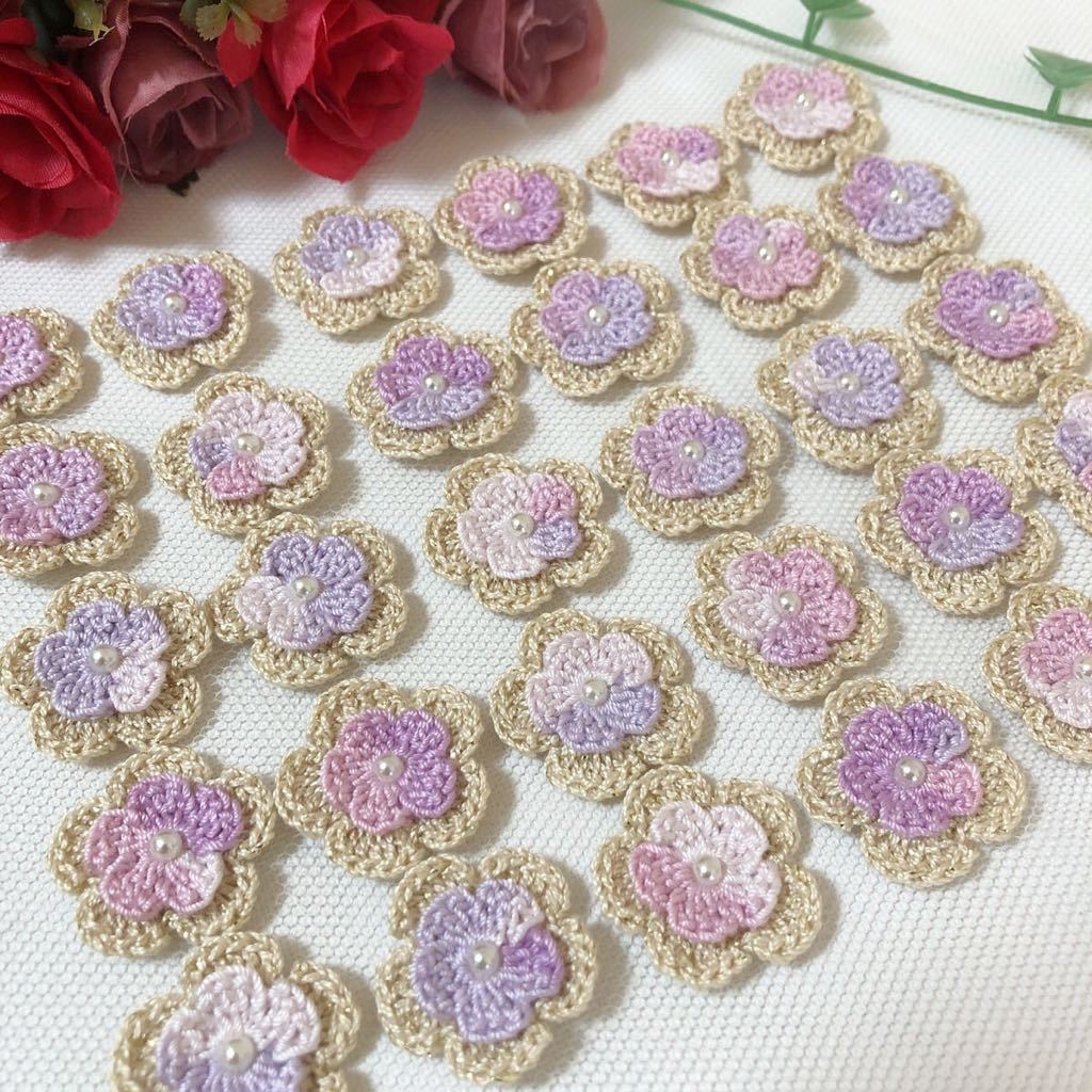 - **(No.96)2重お花(^^)☆ハンドメイド☆【ミックス&ラメ入りゴールド】レース糸 モチーフ パーツ等に