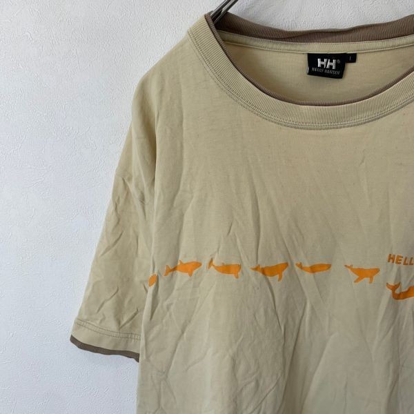 > [KWT1202] HELLY HANSEN 半袖Tシャツ メンズ ベージュ×ブラウン サイズ不明 ポス