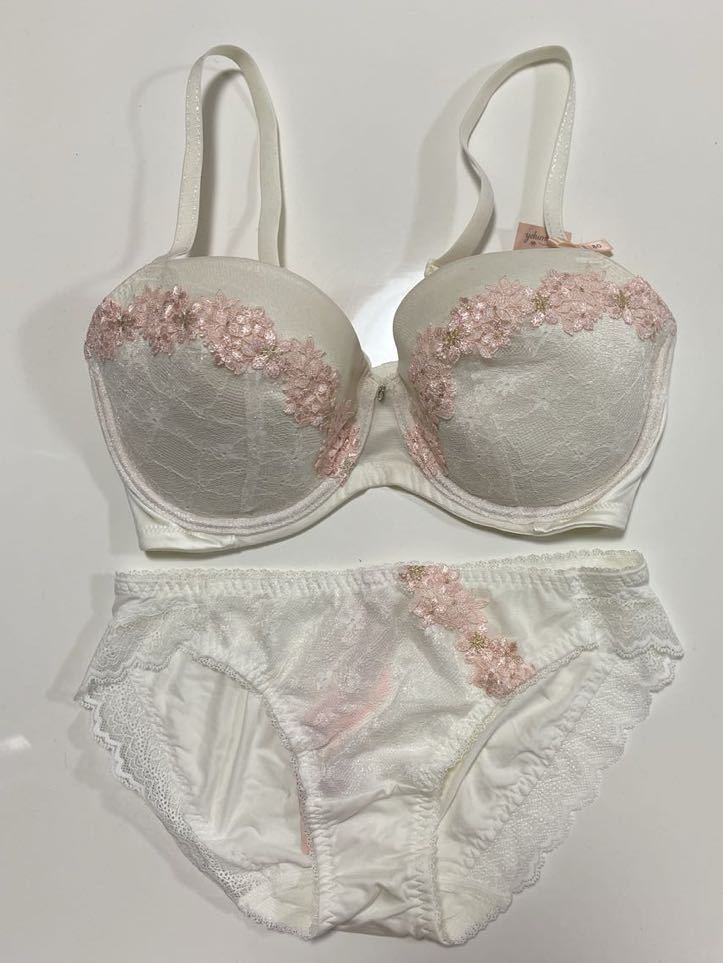 > タグ付き新品■AMOSTYLE By Triumph アモスタイル トリンプ ホワイト レース ブラ E80 ショーツL ブラショーツセット