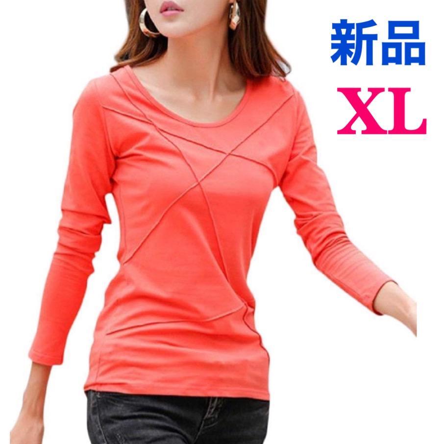 - 新品 レディース カットソー 長袖 XL ピンクレッド Joy Corn