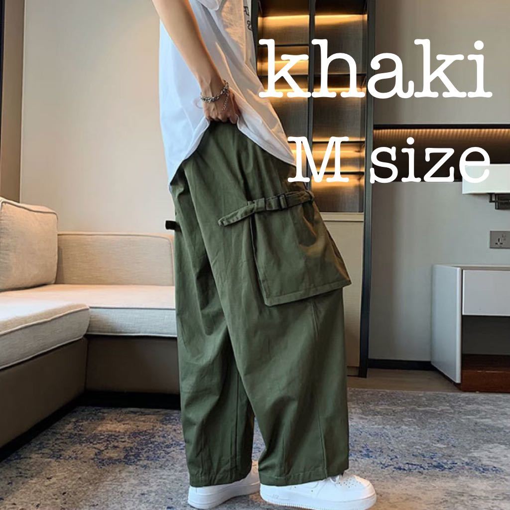 - ボトムス ワイドパンツ カーゴパンツ ワークパンツ ルーズパンツ ユニセックス 男女 カーキ 緑 M