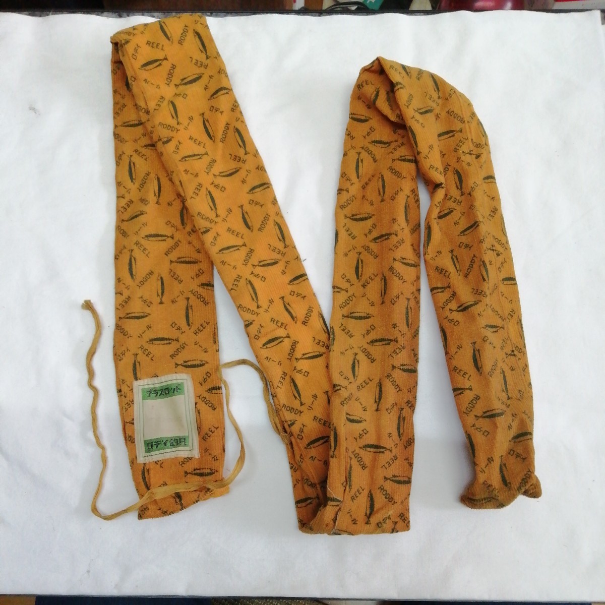 > ロディ 釣具 グラスロッド ケース 布 アンティーク 魚 絵柄 RODDY REEL オレンジ 昭和レトロ 長物ソフトケース 全長約1470mm 送料185円他