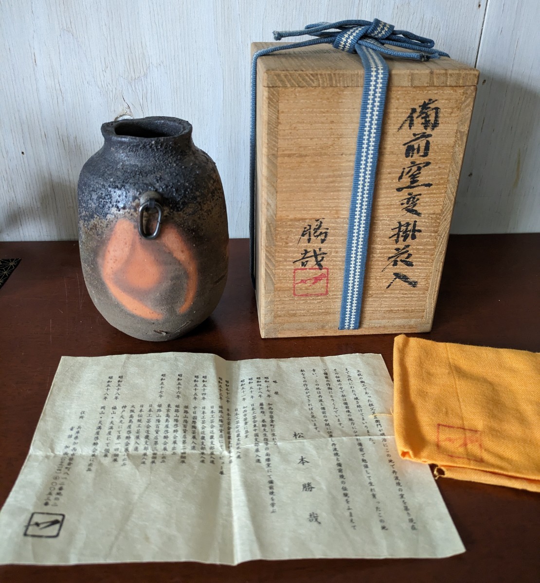 - 備前焼 松本勝哉 窯変 掛 花入 共箱