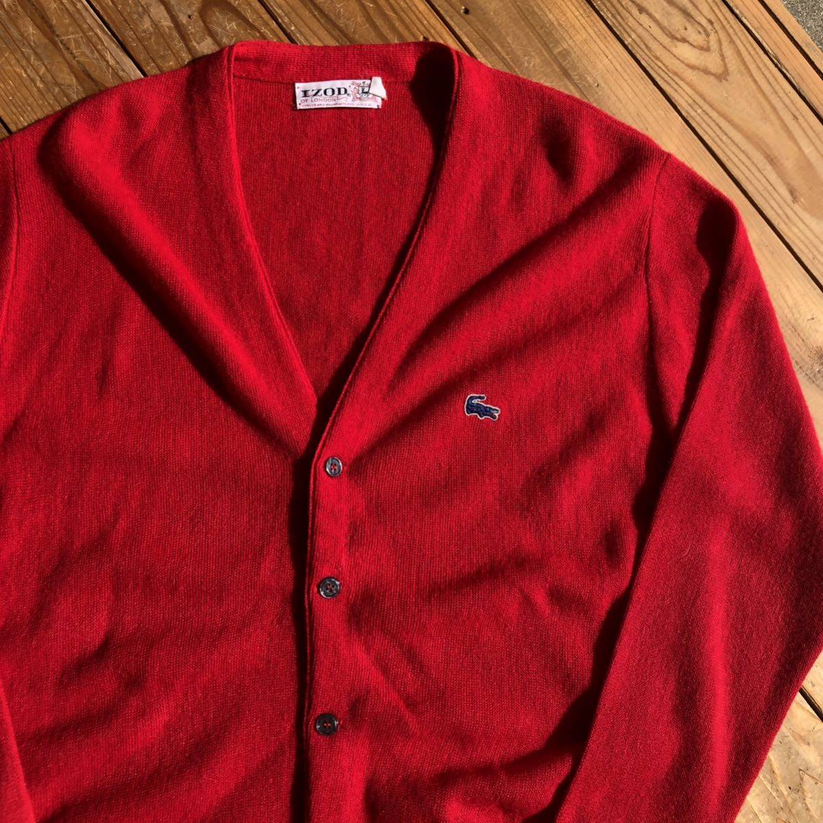 - USA古着 IZOD アイゾッド アクリル カーディガン レッド メンズL 糸巻きタグ アメカジ あいみょん アメリカ仕入 カジュアル ニット S0721