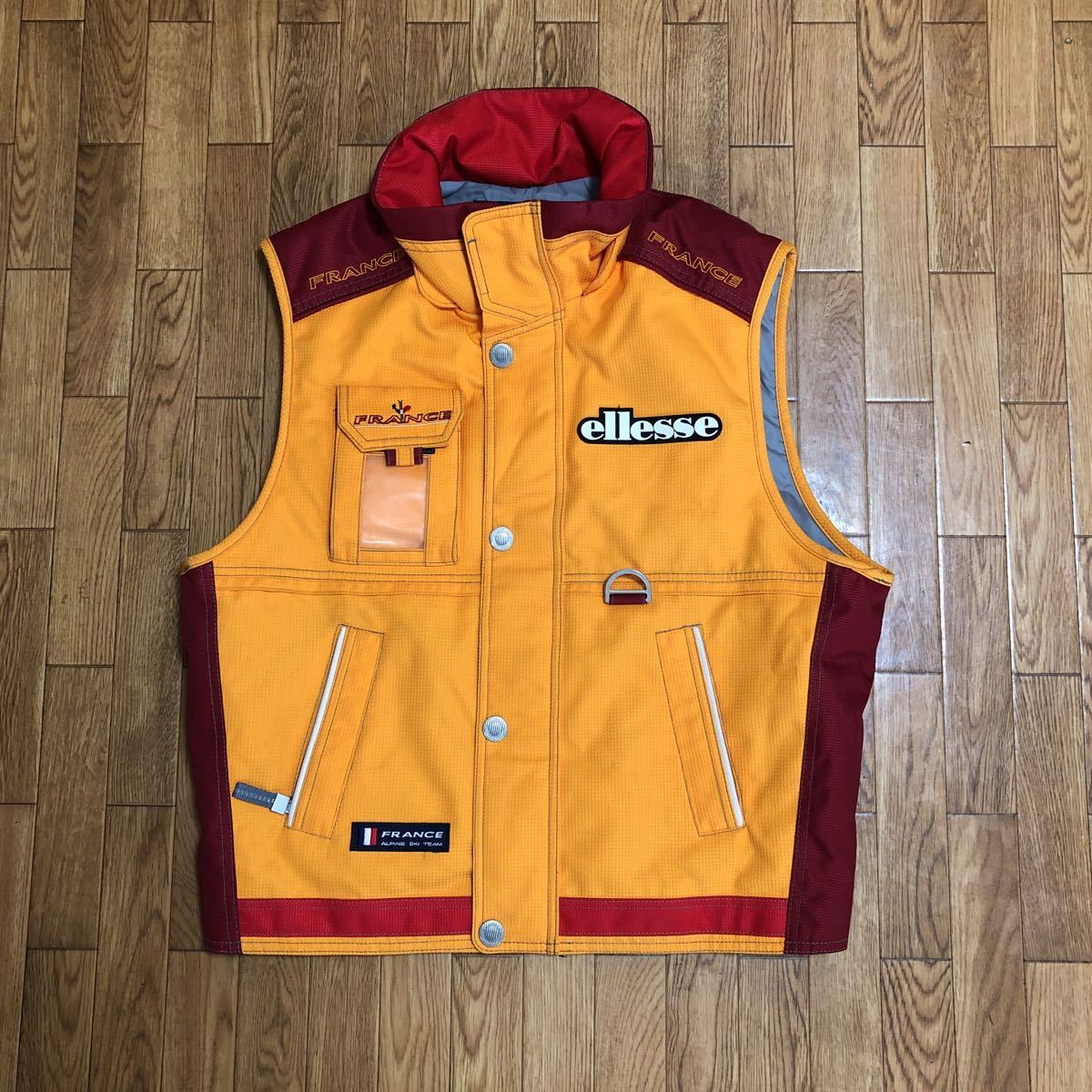 > 80〜90s 日本製 GOLDWIN ellesse ベスト フランス アルペンスキーチーム 黄色 ワインレッド Sサイズ 古着 ヴィンテージ