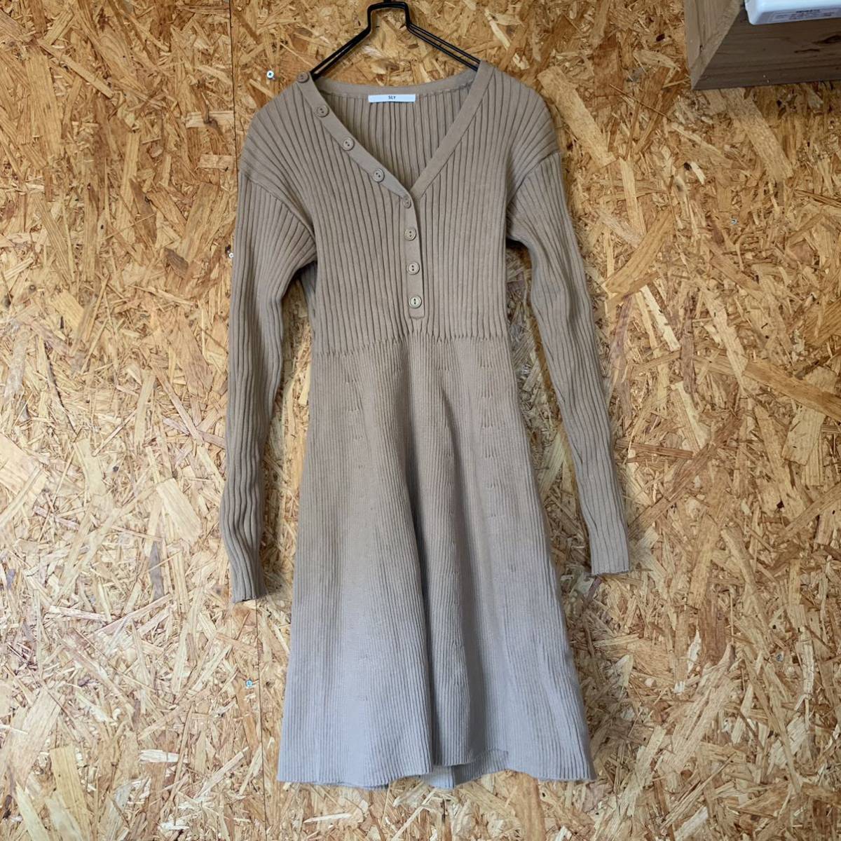 - 美品 SLY スライ ニットワンピース Aラインワンピース ワンピース ベージュ リブニット ワンピース 2405