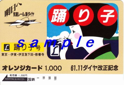 - 国鉄オレンジカード(未使用)61.11ダイヤ改正記念 踊り子号 ヘッドマーク 明日へ快適レール新ダイヤ