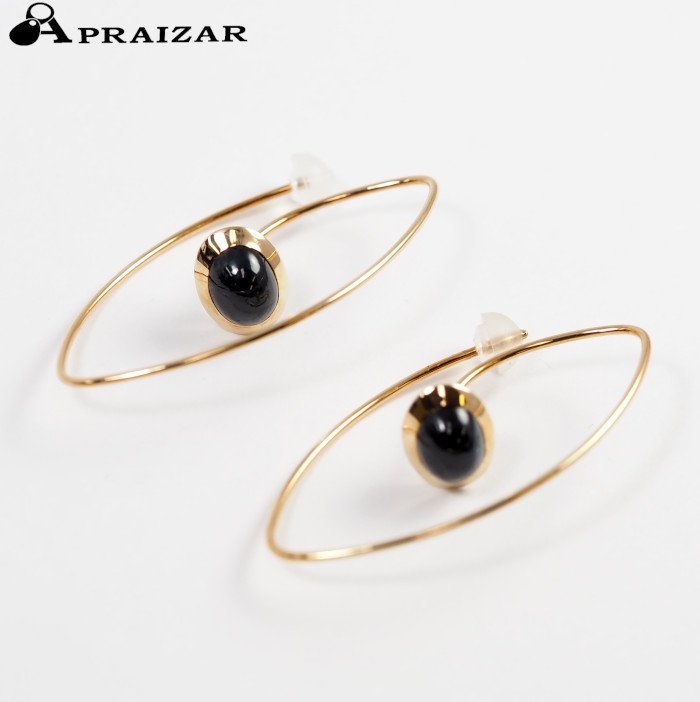 - HIROTAKA ヒロタカ K18イエローゴールド ブラックサファイア2.38ct/2.44ct フローティングピアス フック ピアス ケース付 [58049]