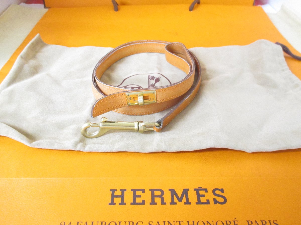 - 本物保証【即決で送料無料】エルメス/オレンジ/ドッグ/犬/リード/ペット用/レザー製/□刻印/HERMESの保存袋を付属/正規品