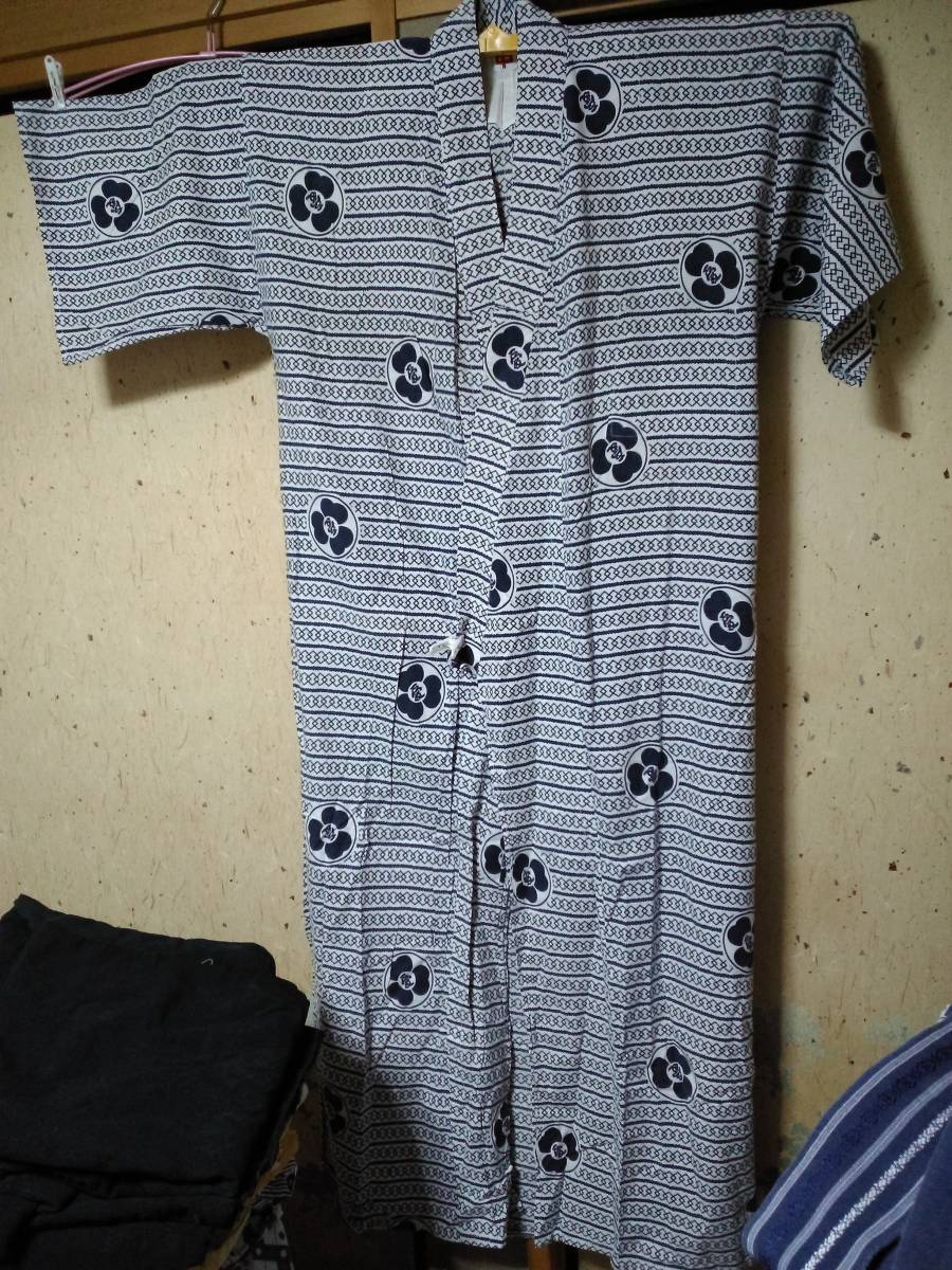 - 旅館 ホテルの寝巻き浴衣(中)白紺、鎖と花びら■送600