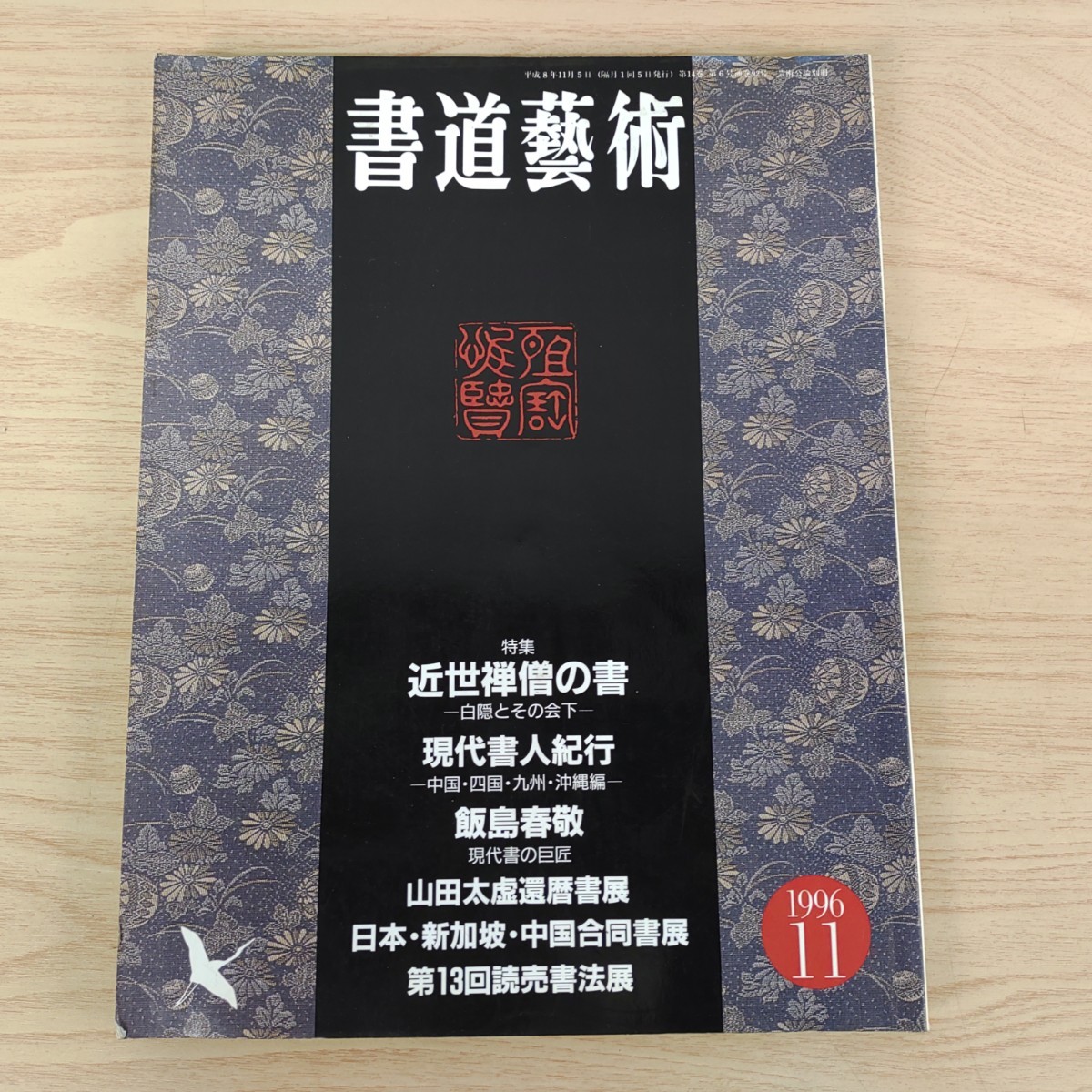 > B2310039書道藝術1996年11月号創刊14周年記念号第6号 禅僧白隠 現代書飯島春敬 山田太虚還暦書展 日本新加坡中国合同書展 第13回読売書法展