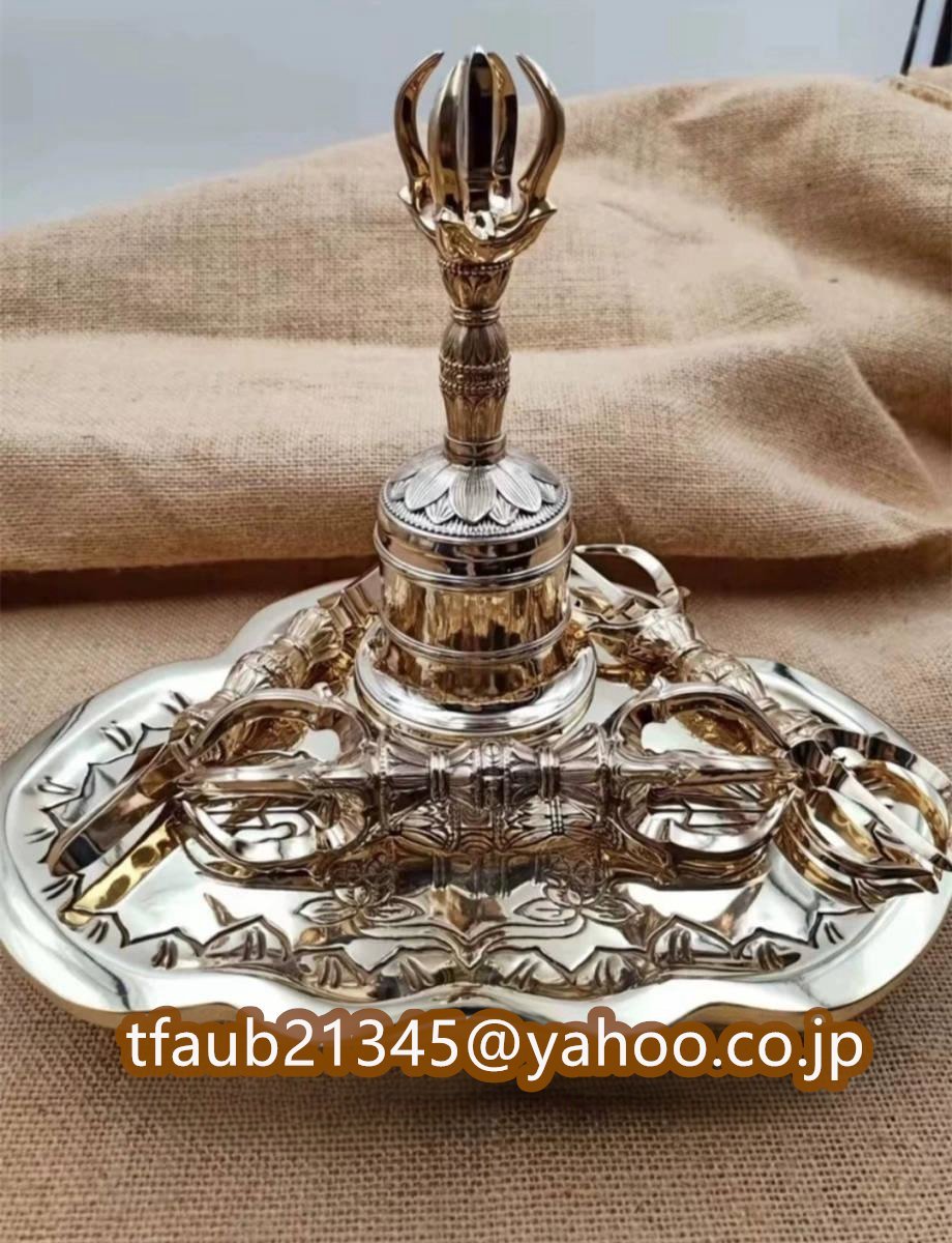 - 「密教法具 寺院仏具」極上品 金剛鈴/金剛盤/独鈷杵/三鈷杵/五鈷杵 5点セット 仏教芸術品 仏具 銅製 磨き仕上げ 長さ16cm