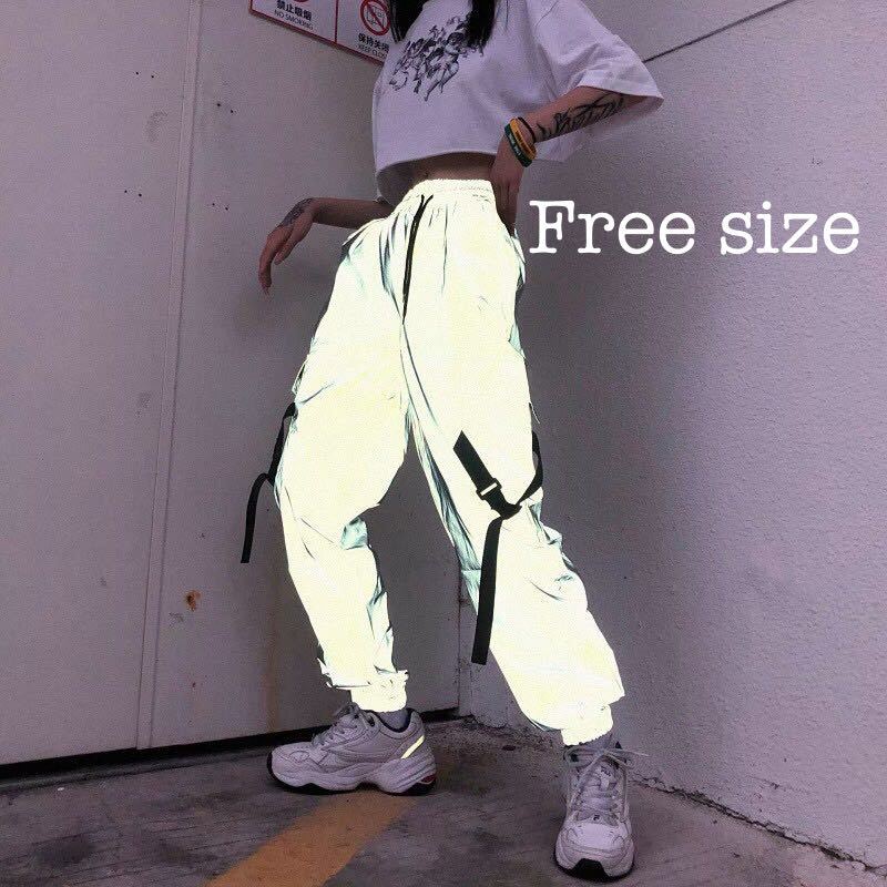 - ジョガーパンツ テーパードパンツ リフレクター ボトムス ユニセックス 男女兼用 グレー 蛍光 フリーサイズ