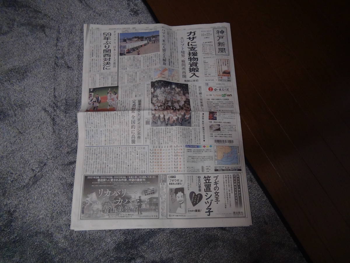 - オリックスCS優勝2023年10月22日KOBE新聞 !。