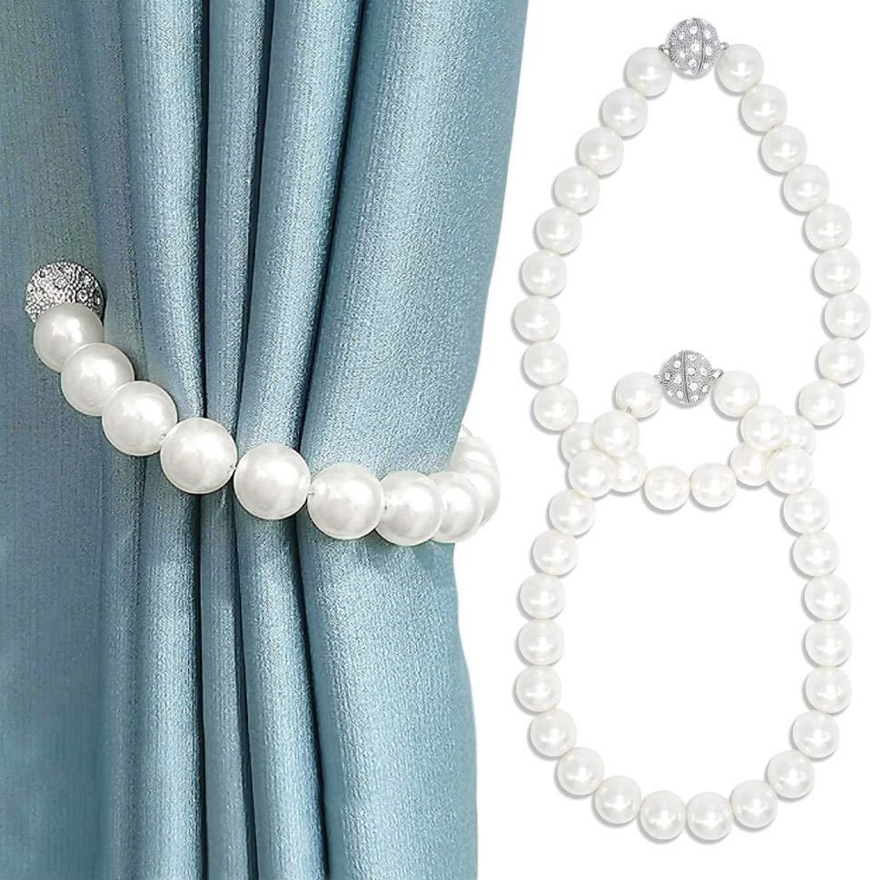 - カーテンタッセル ペア 2本セット マグネット パール 真珠 房掛け