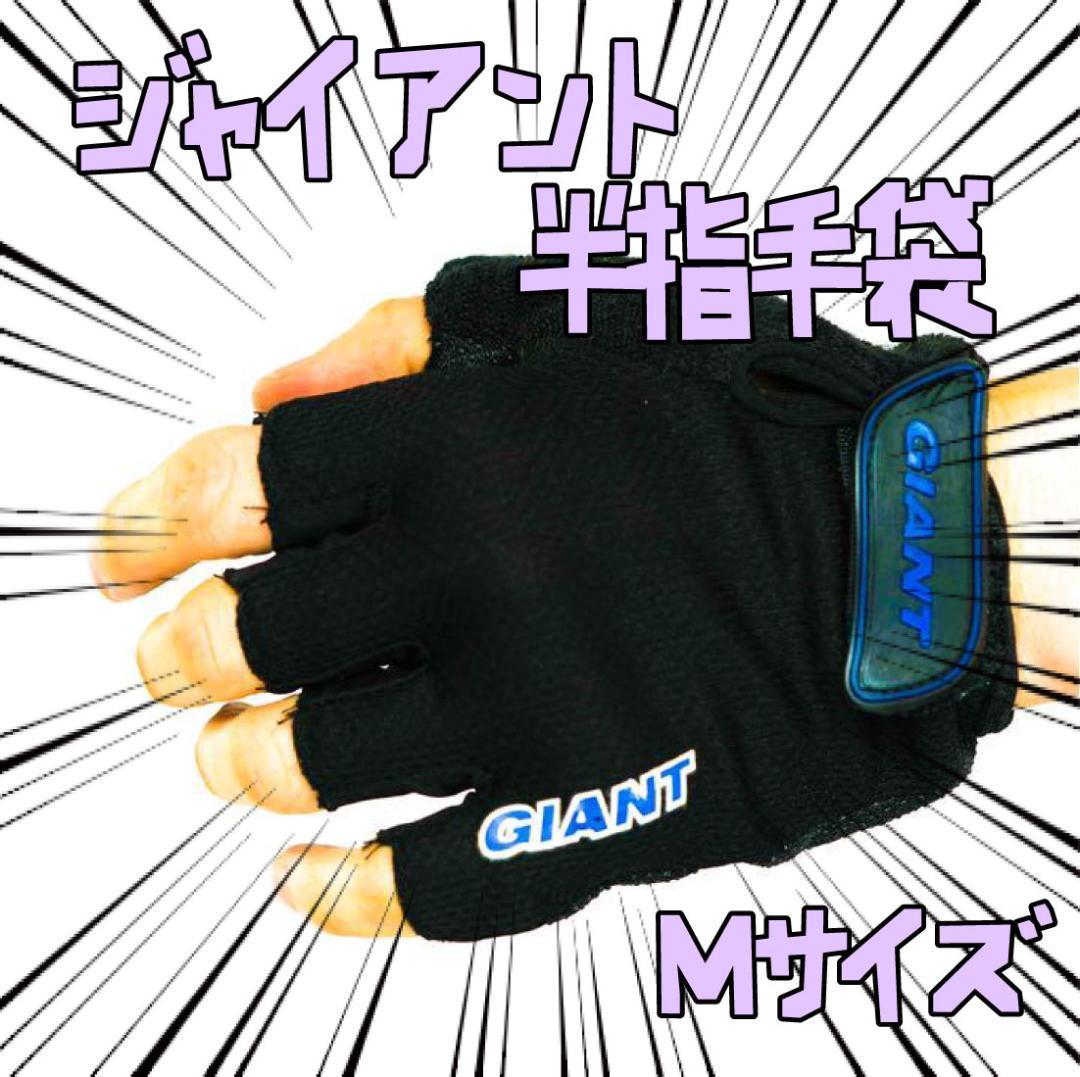 - 手袋 giant ジャイアント M黒青 ブラック 半指 リボン袋付【残3のみ】